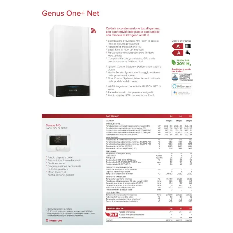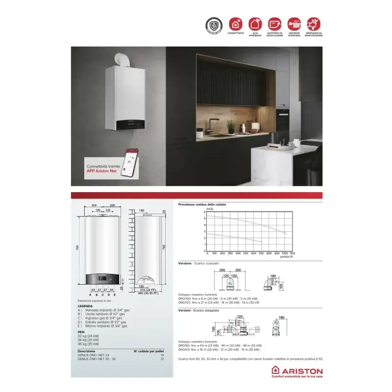 Caldaia a Condensazione Ariston Genus ONE+ Net Wifi 35 kW, Sistema HVAC Domestico, Modello a Gas Naturale e GPL