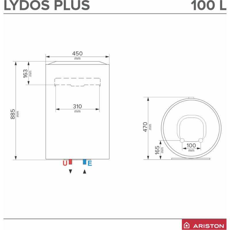 Scaldabagno Elettrico Ariston Lydos Plus 100 Litri V/5 per Uso Domestico, Montaggio a Parete, 2000W