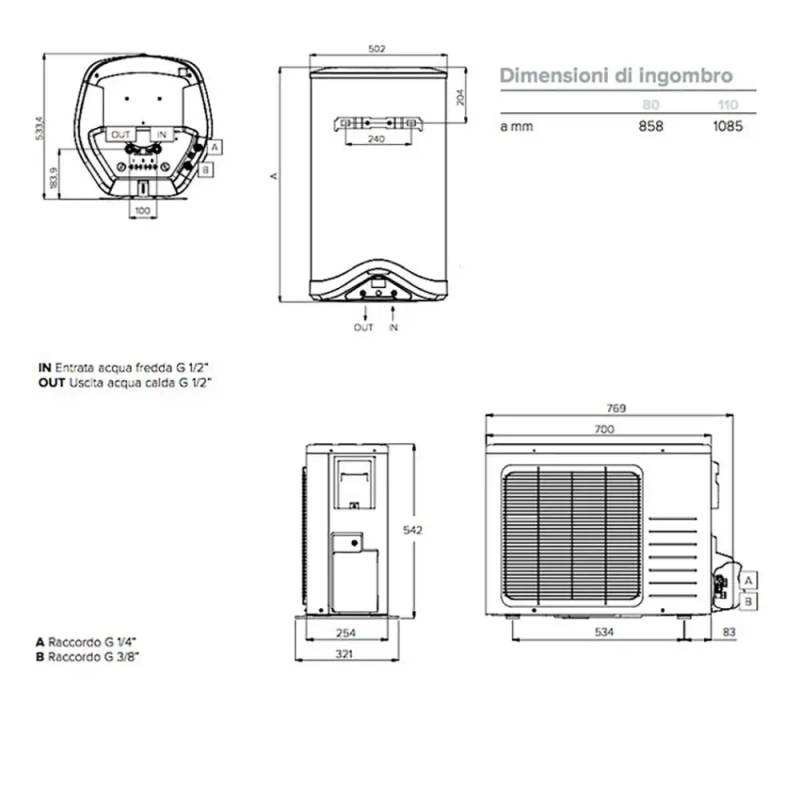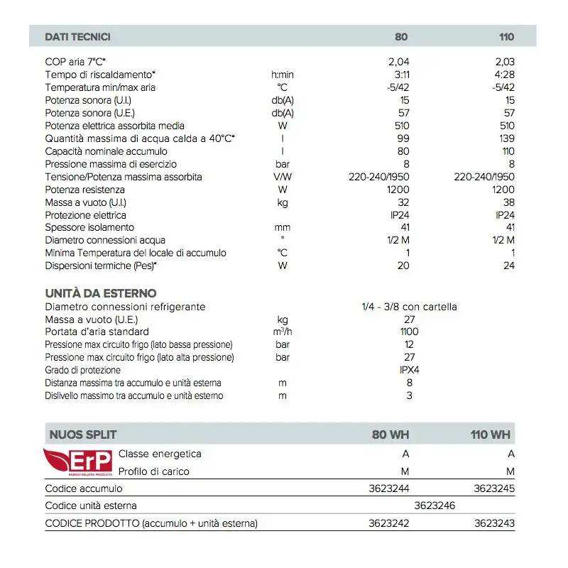 Pompa di Calore Aria-Acqua Ariston Nuos Split, Scaldabagno Elettrico Domestico da 110 Litri, R410A ad Alta Efficienza Energetica