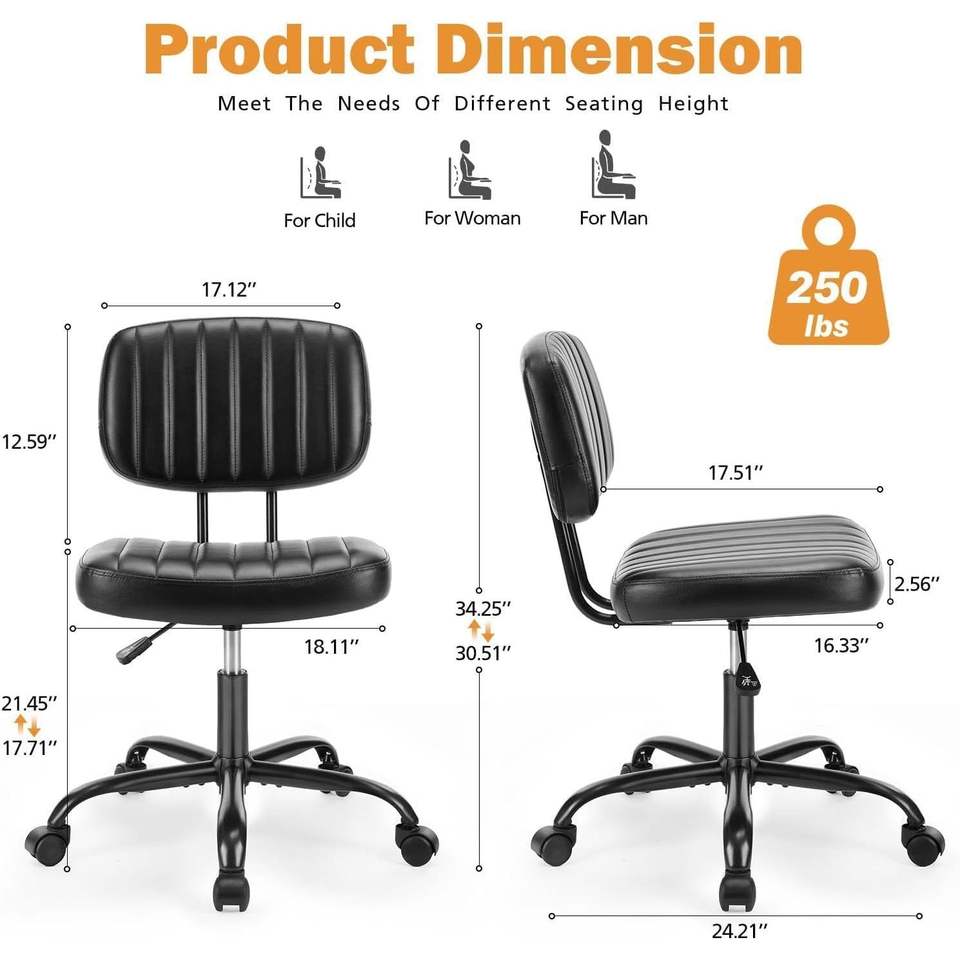Sedia da Ufficio Senza Braccioli in Pelle PU con Comodo Supporto Lombare per Spazi Ristretti