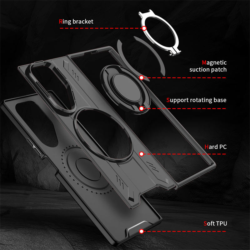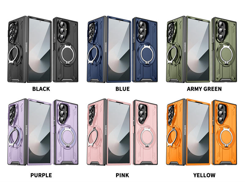 Cover Magnetica Corazzata per Samsung Galaxy Z Fold 7 6 con Anello Girevole e Supporto, Custodia Antiurto per Samsung Galaxy Z Flip 7 6