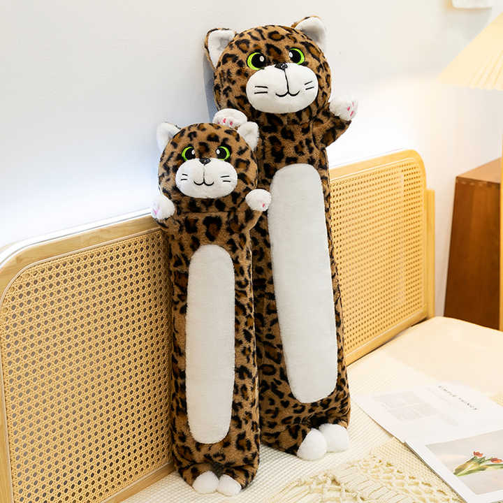 Nuovo Arrivo: Cuscino Lungo a Forma di Gatto con Stampa Leopardata, Morbido Peluche Imbottito, Giocattolo Carino per Bambini, Letto, Divano, Regalo di San Valentino