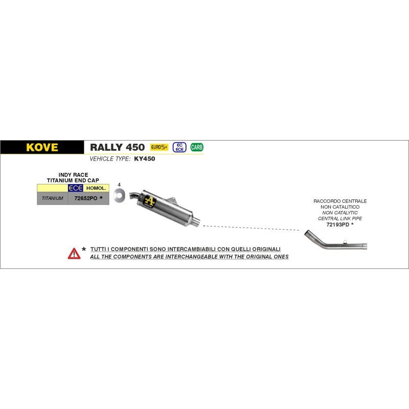 Tubo Centrale Non Catalitico in Acciaio Inox Arrow 72193PD per Sistema di Scarico Kove 450 Rally Racing con Adattatore da 51mm