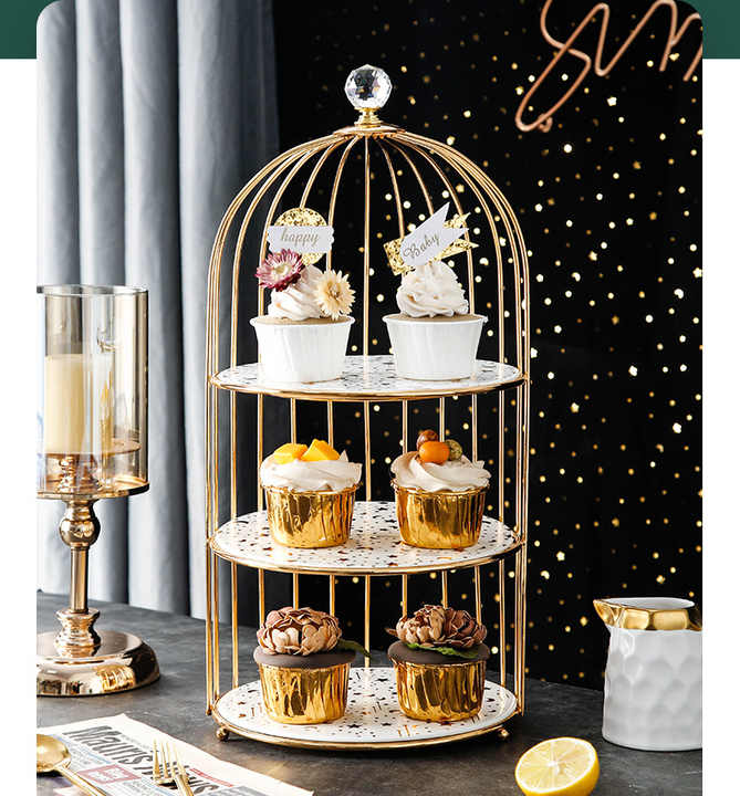 Espositore per alimenti per arte e matrimonio in ceramica a tre strati a doppio strato