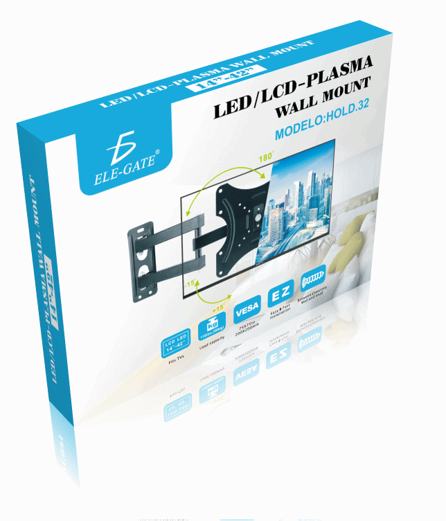 Supporto da Parete Articolato in Acciaio per TV da 14-42 Pollici, Capacità di Carico 20kg, Distanza 8cm, per Uso Ufficio