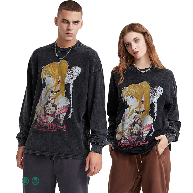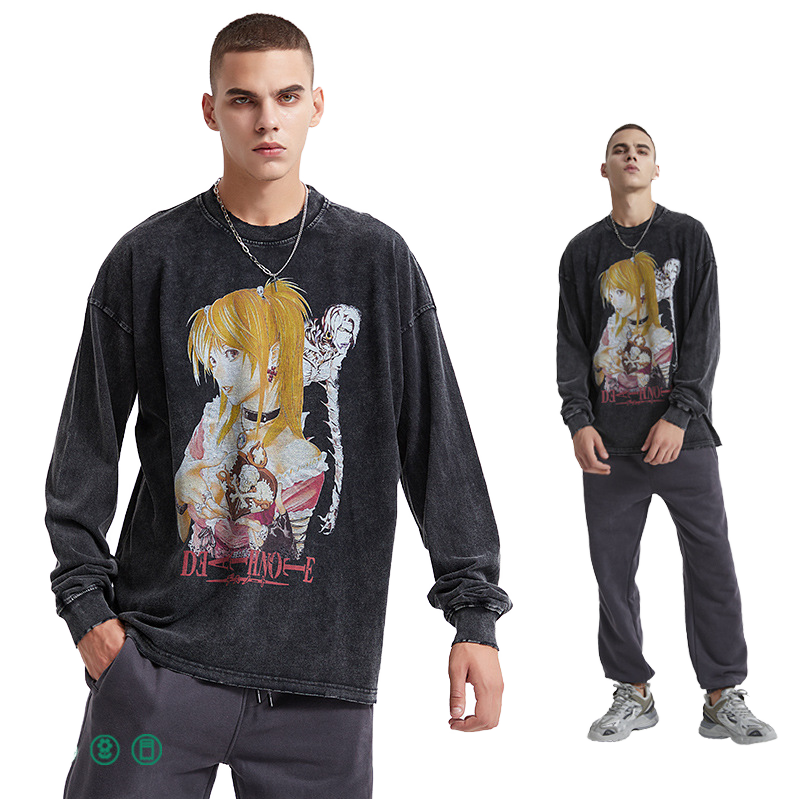 Maglietta Vintage Artie da uomo morente stampa digitale manica lunga con stile Tie-Dye lavate scure di marca retrò alla moda"