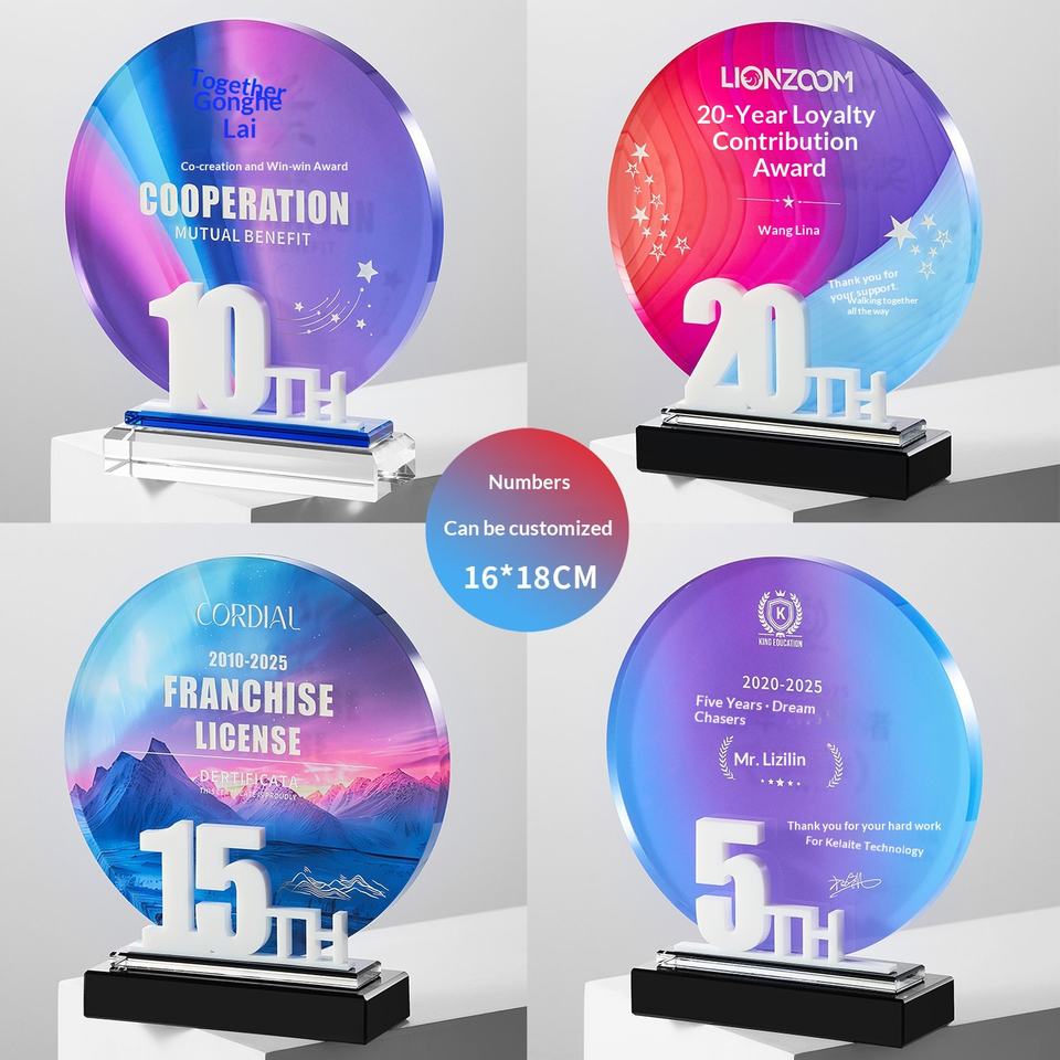 Trofeo Rotondo in Cristallo Acrilico Artificiale Personalizzato 2025-2026 Stella dell'Anno Premio del Personale per il Cinquantesimo Anniversario