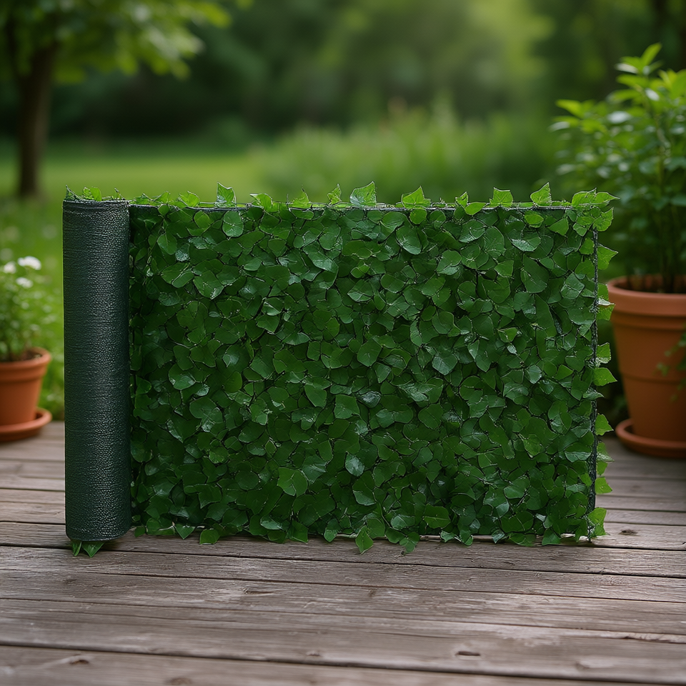 Schermo per la privacy in foglie di edera artificiale 39 x 98 pollici, verde scuro, resistente per esterni, giardino, paesaggistica e decking