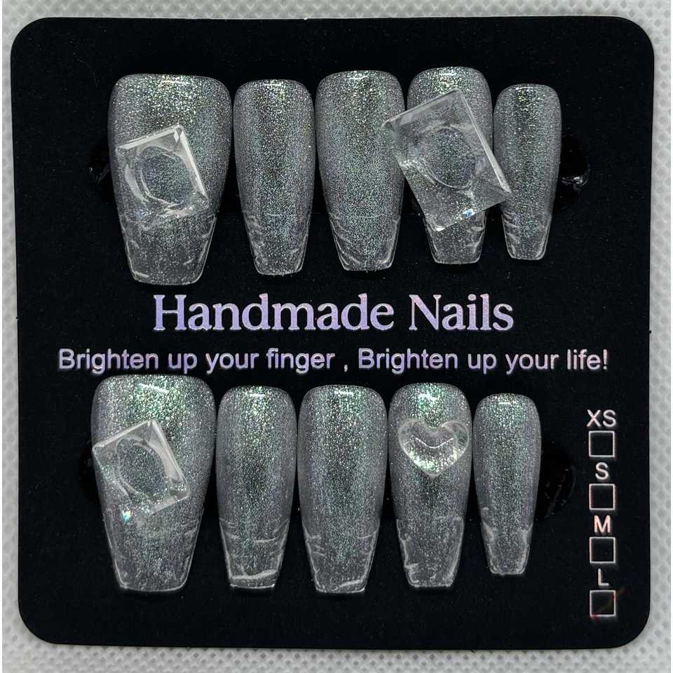 Unghie Artificiali Effetto Vetro Marino con Punte Grandi