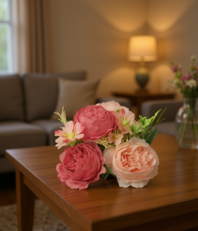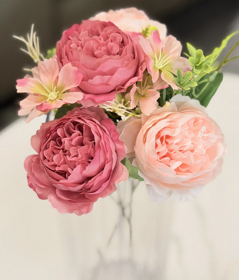 Bouquet di Fiori Artificiali 12 Pezzi Rosa in Seta Realistici Fatti a Mano per Decorazioni Casa e Matrimonio