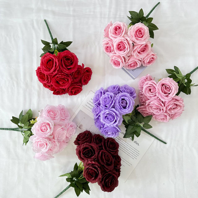 Artificial Flowers 9-Head Large Horn Rose Artificial Silk Roses Flowers Home Wedding Decoration Table Decor