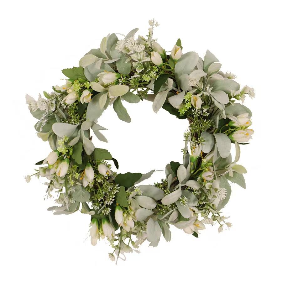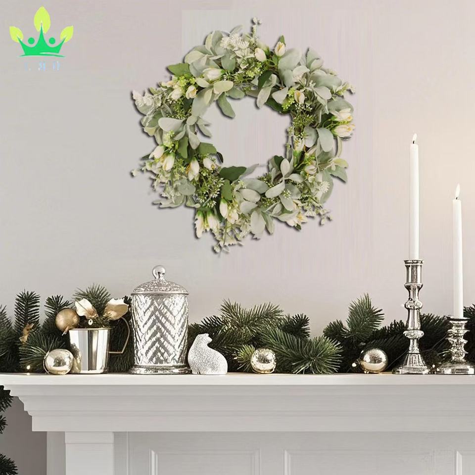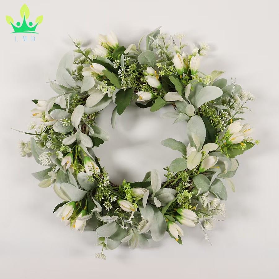 Verde artificiale ghirlande per porta d'ingresso foglie di eucalipto con fiori agnelli orecchio per la decorazione della fattoria della parete del portico