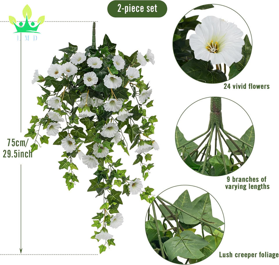 Artificial Petunias Flowers Faux Plants Flora Petunias Hanging Flower Patio for Porch Front Door Garden Farmhouse Without Basket