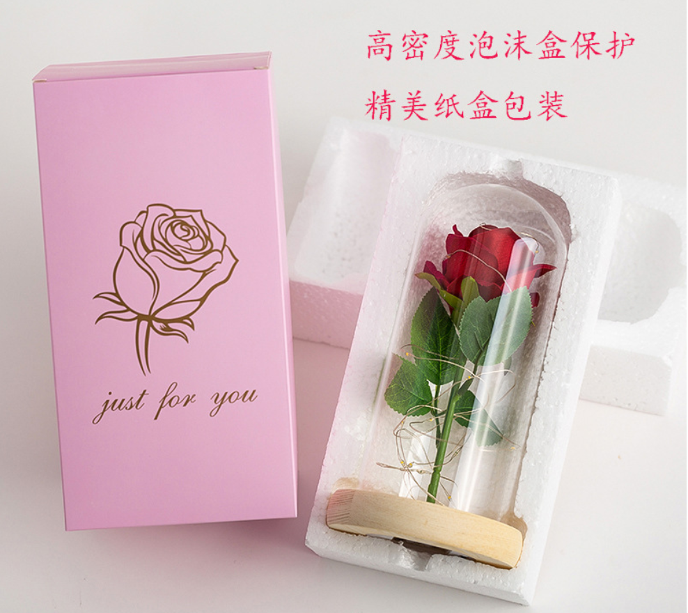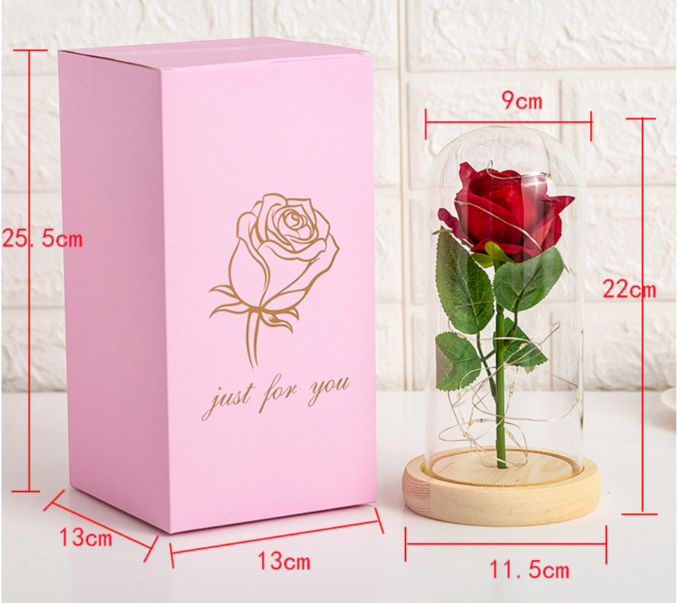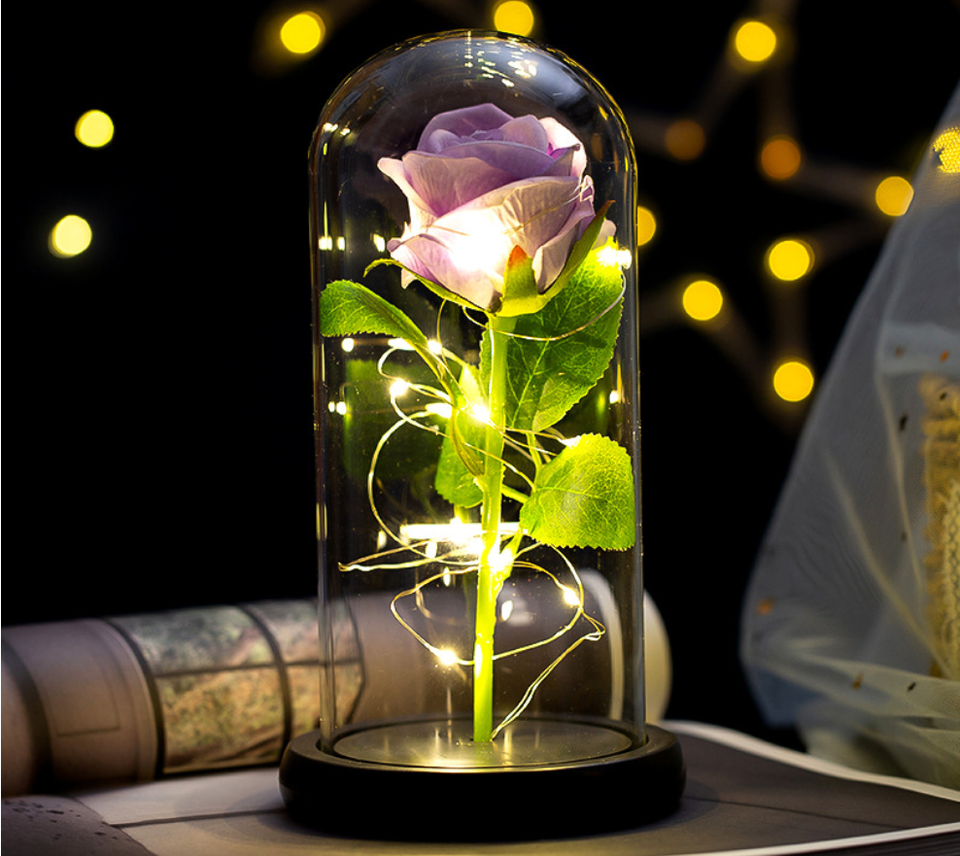 Seta artificiale fiore di rosa con Stringa di Luce A Led in cupola di vetroNome