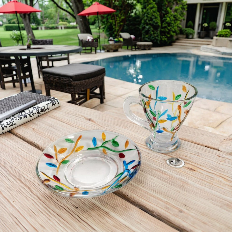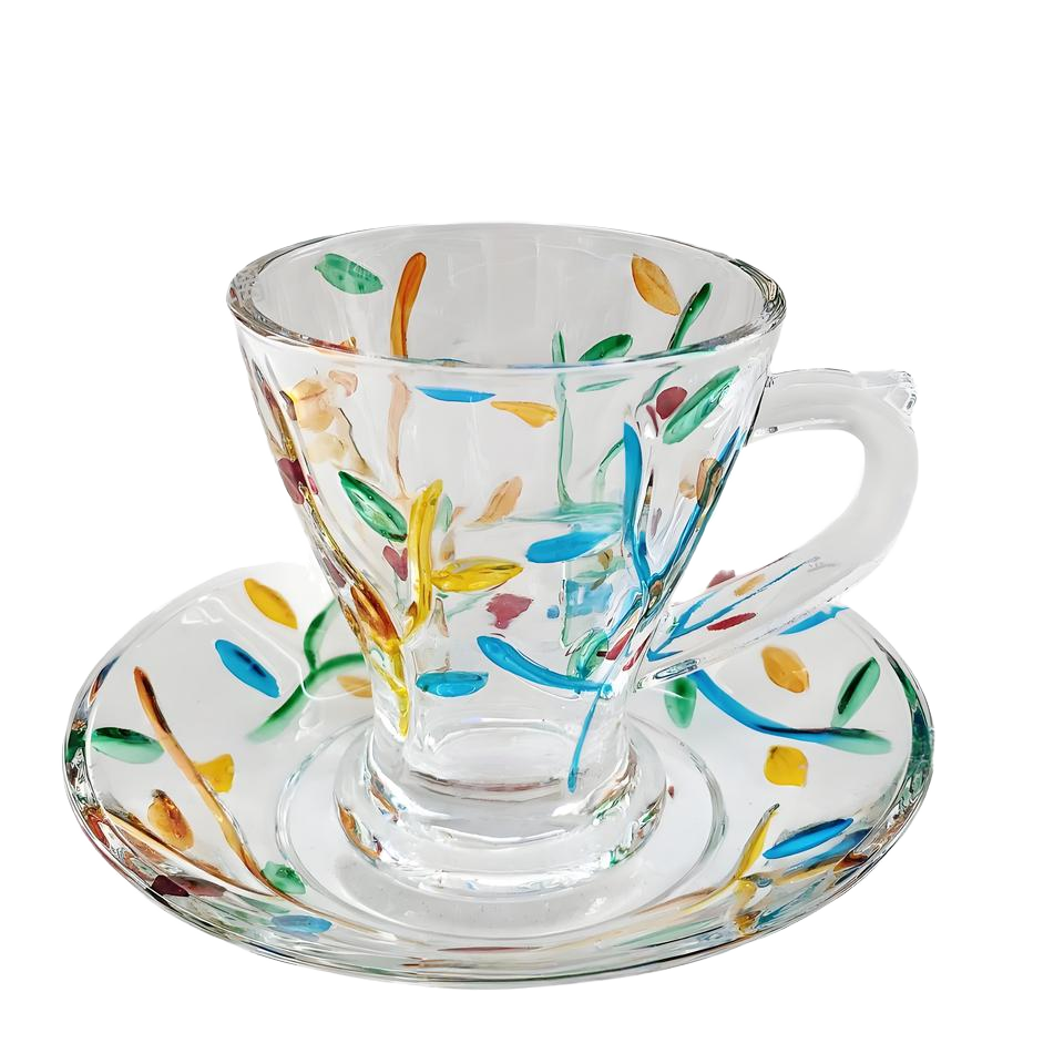 Artificially Painted Crystal Marks Stained Glass Drinkware Set Unique Coffee Cup and Saucer Collection