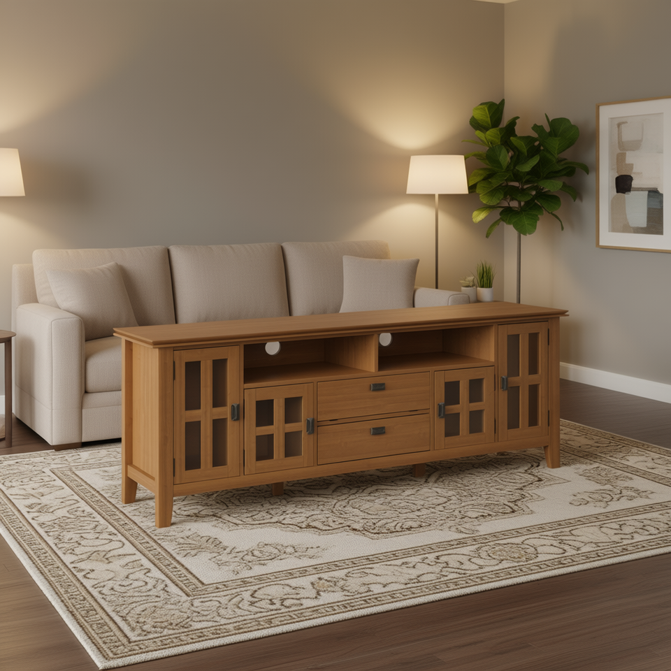 Mobile TV Artigianale da 72 Pollici in Legno Massello Marrone Miele, Design Moderno per Soggiorno