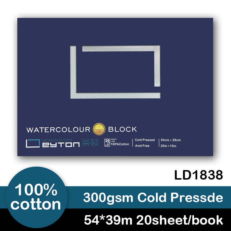 Artist Academy Quality 300gsm 100% Cotton Cold Press LD1838 Watercolor Paper Pad 4 Sides Glued Watercolor Block