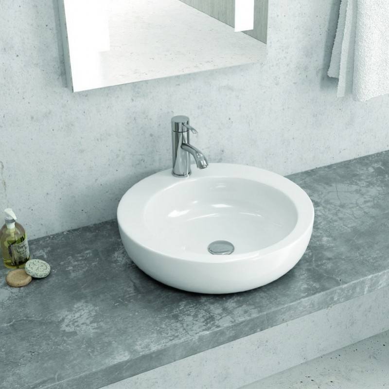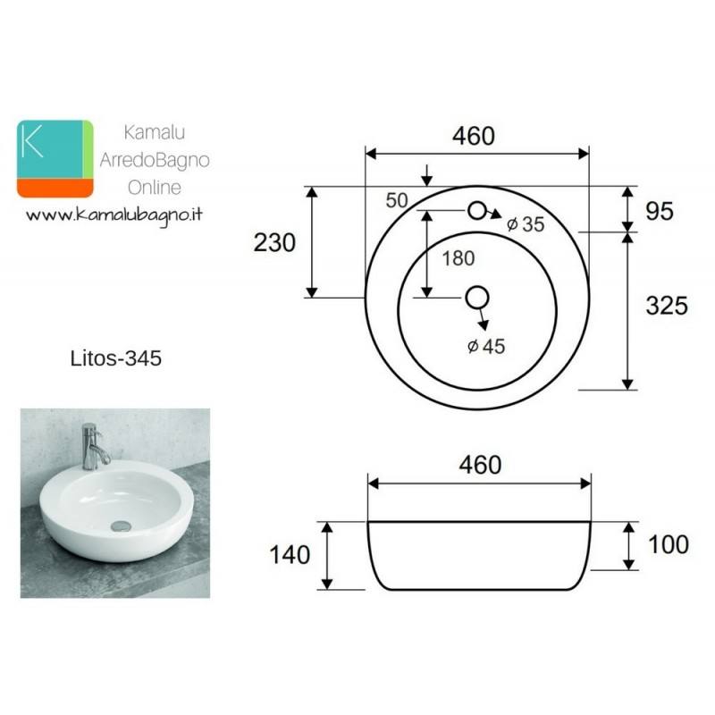 Lavabo da Appoggio Artistico Rotondo 46cm in Porcellana Opaca Effetto Marmo Modello Litos-345 per Bagno e Hotel
