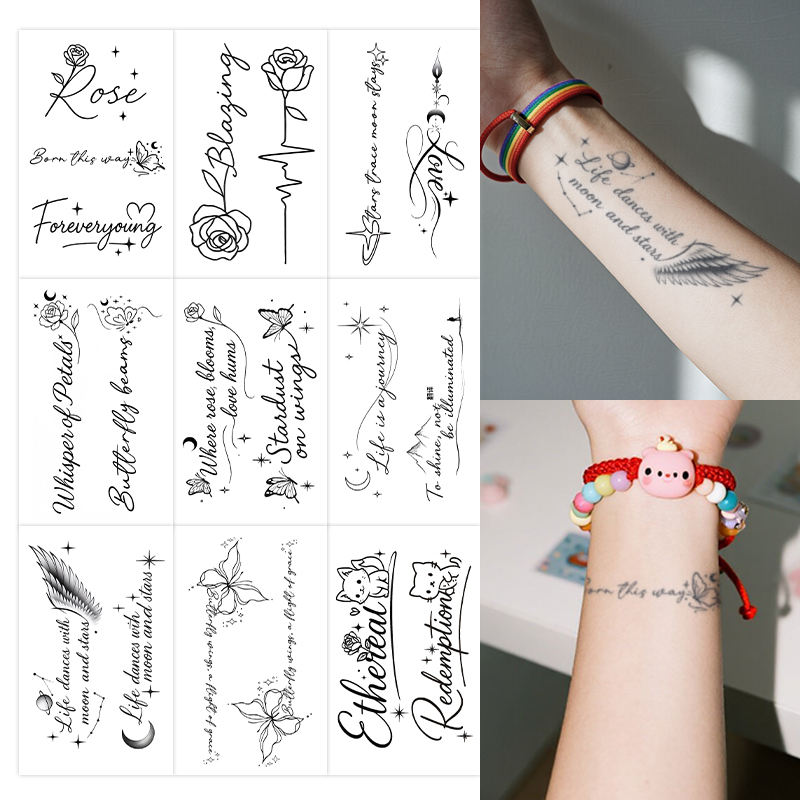 Lettere artistiche e grafica tatuaggio temporaneo tatuaggio Semi permanente creativo impermeabile ultimo per 2 settimane tatuaggio a base di erbe per il braccio