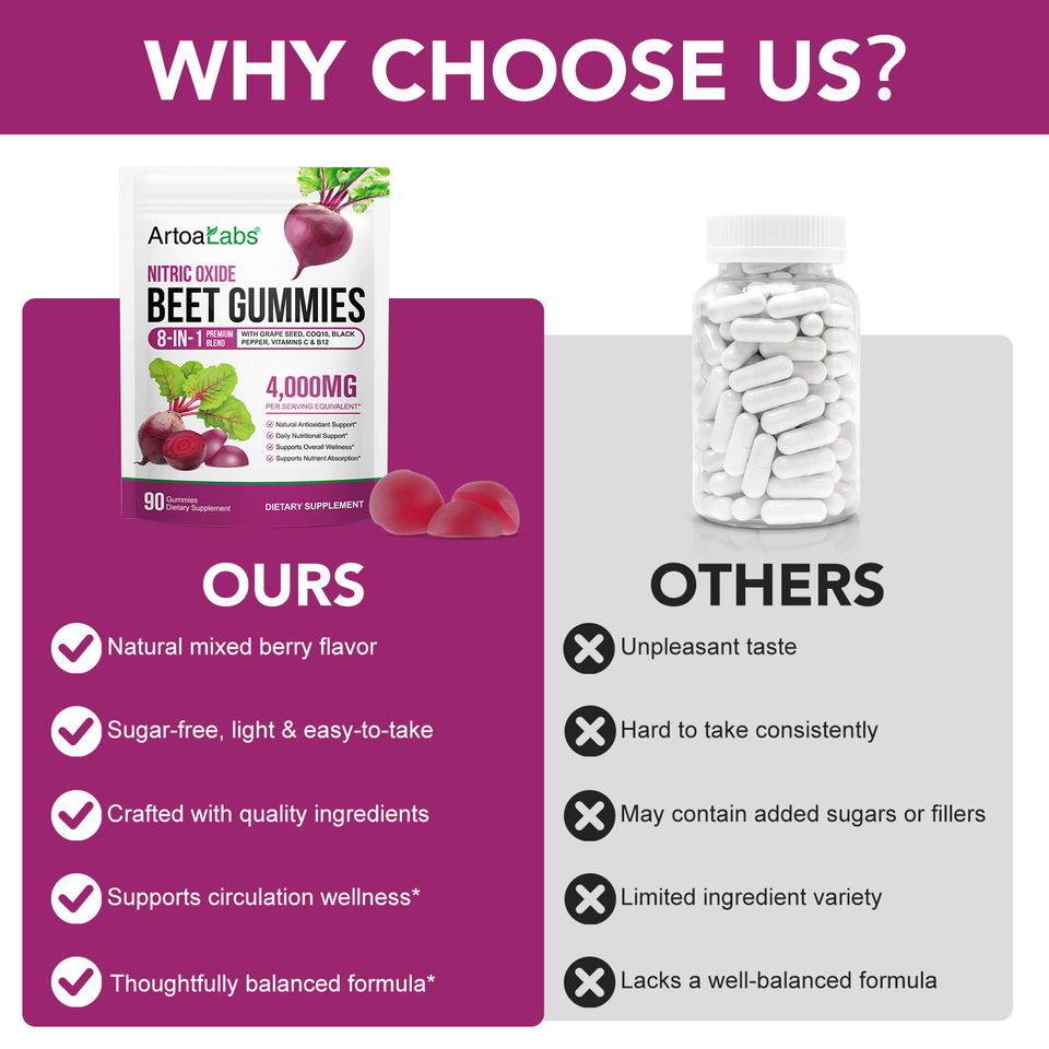 ArtoaLabsr Non-GMO Beet Root Gummy Organic Raw Beetroot Extract Supplement Superfood Beet Gummies for Energy & Wellness Support