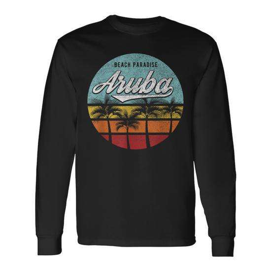 T-shirt a maniche lunghe stile vintage Aruba I Caribbean Retro Beach Vacation Cruise, abbigliamento promozionale da viaggio