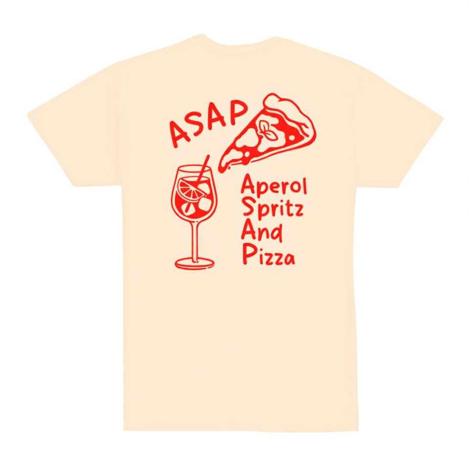T-shirt Asap con design Aperol Spritz e Pizza, abbigliamento casual unisex