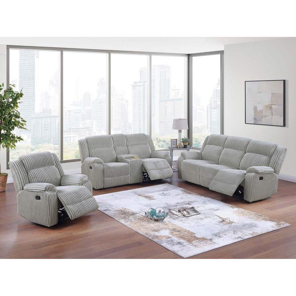 Cenere di colore pelliccia-come velluto a coste 3pc divano movimento Loveseat W/ Console e poltrona reclinabile per soggiorno