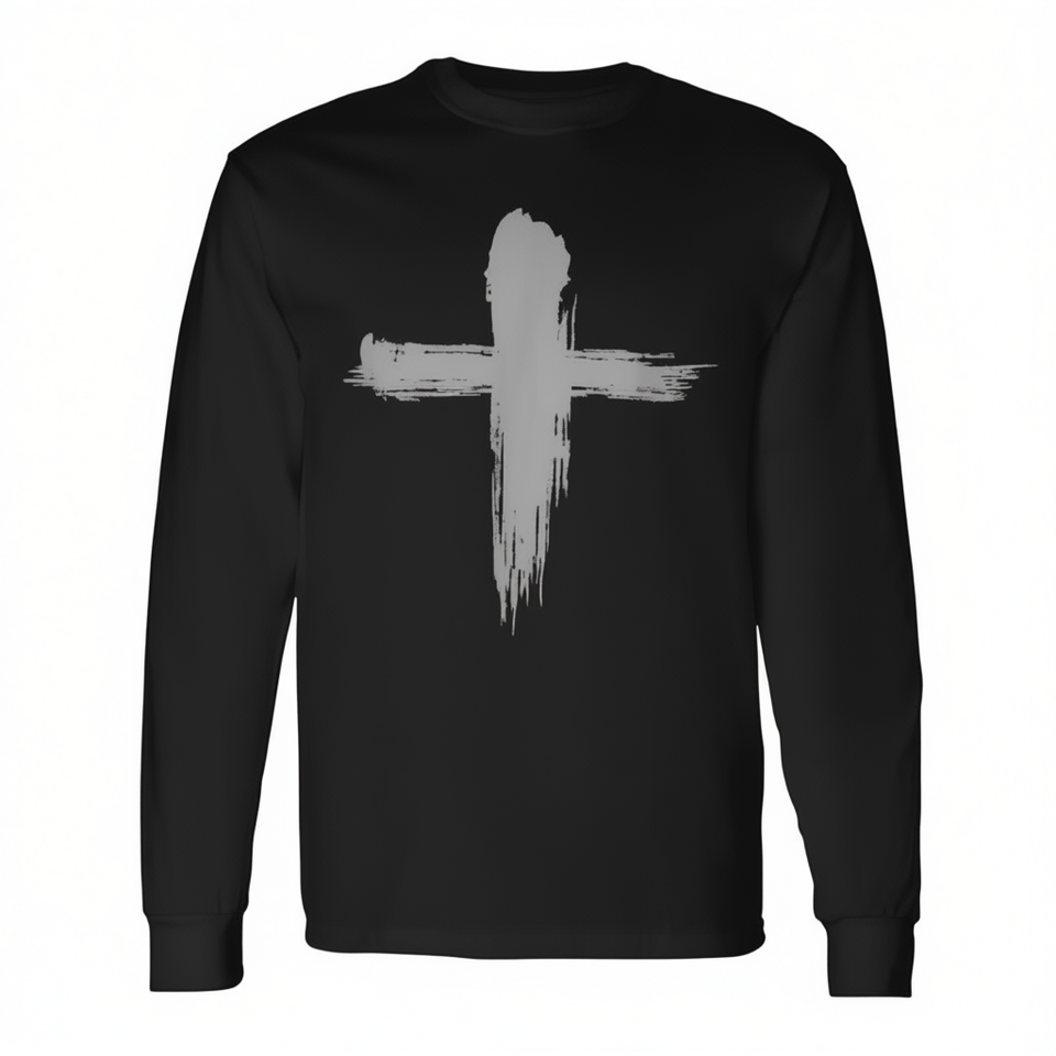 T-shirt a maniche lunghe Asher Wednesday Cross Christian, design unisex nero