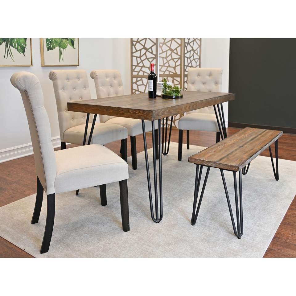 Set da pranzo Ashford da 6 pezzi, tavolo Hairpin con 4 sedie e panca, disponibile in 4 opzioni di colore