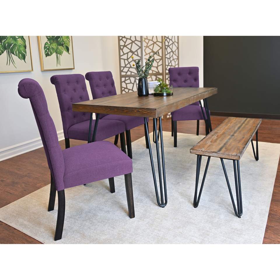 Set da pranzo Ashford da 6 pezzi, tavolo Hairpin con 4 sedie e panca, disponibile in 4 opzioni di colore