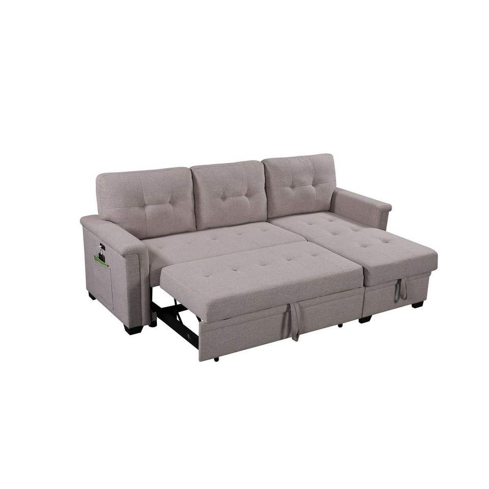 Ashlyn 84\" Light Gray Reversible Sleeper Sectional Sofa with Storage Chaise USB Charging Ports Pockets USB Charging Sofa Beds