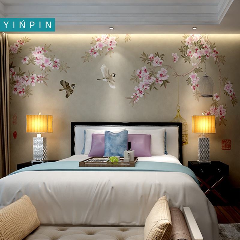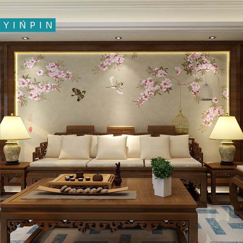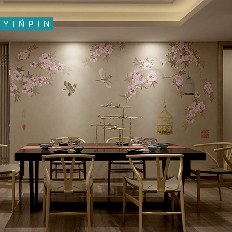 Carta da Parati Asiatica con Uccelli, Murale Classico Cinese per Casa da Tè, Carta da Parati 3D