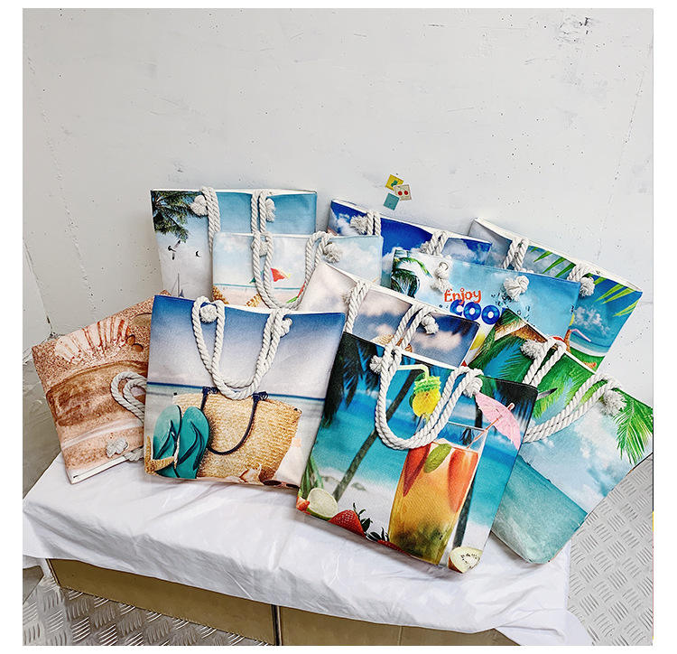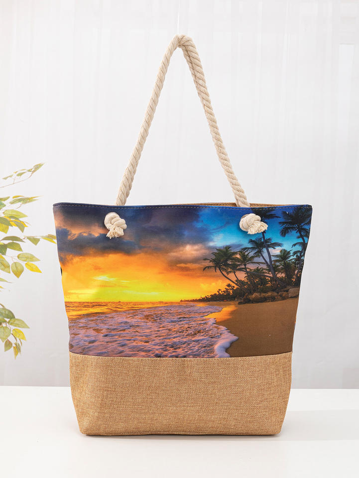Asiatico Zen Bali Smile Face in maglia di poliestere da viaggio da spiaggia Tote Shopping Bag