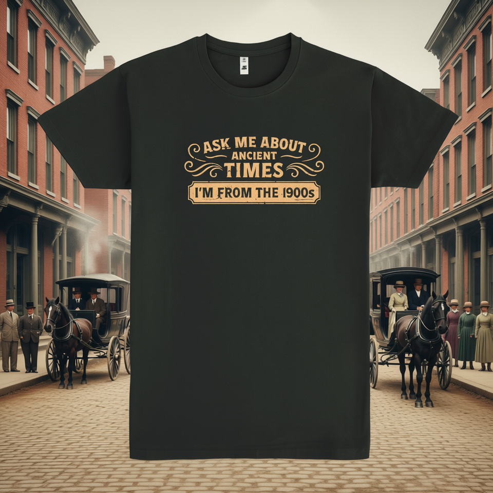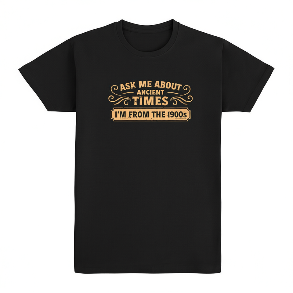Chiedimi di tempi antichi, sono nato agli anni '00, maglietta nera da uomo, camicia promozionale