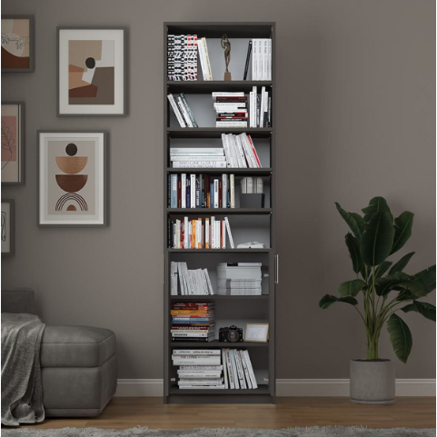 Asra Trend K-38 Executive Office Cabinet 100% MDFLAM Dark Gray Storage Bookshelf Doors Slim Anthracite Executive Bookcase