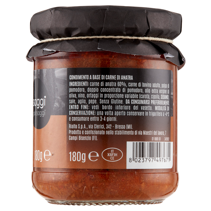 Assaggi E Paesaggi Gourmet Duck Sauce Gluten-Free Savory Flavors 180g Jar-Delicious Addition to Enhance Any Dish
