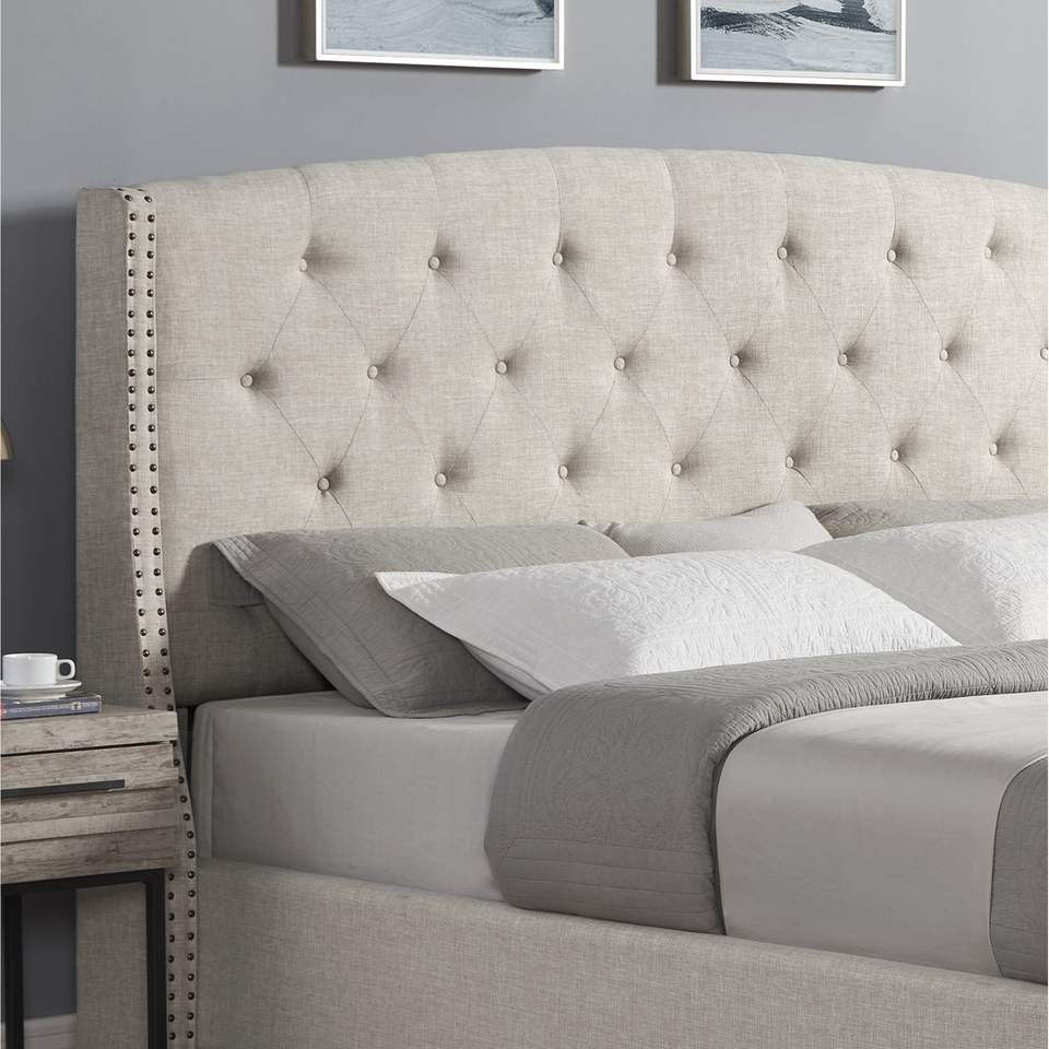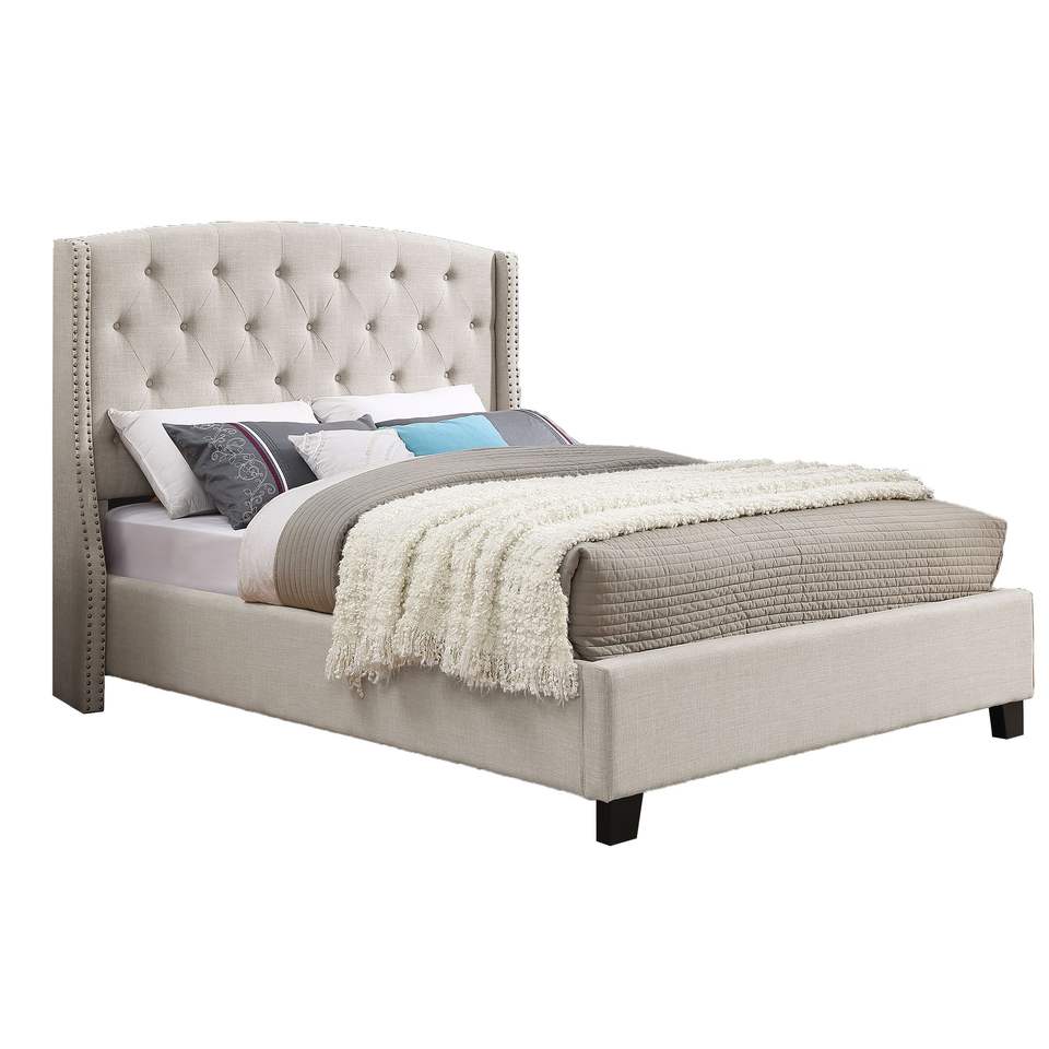 Set Camera da Letto Imbottito Astral a 3 Pezzi con Letto Wingback e Due Comodini Bianchi