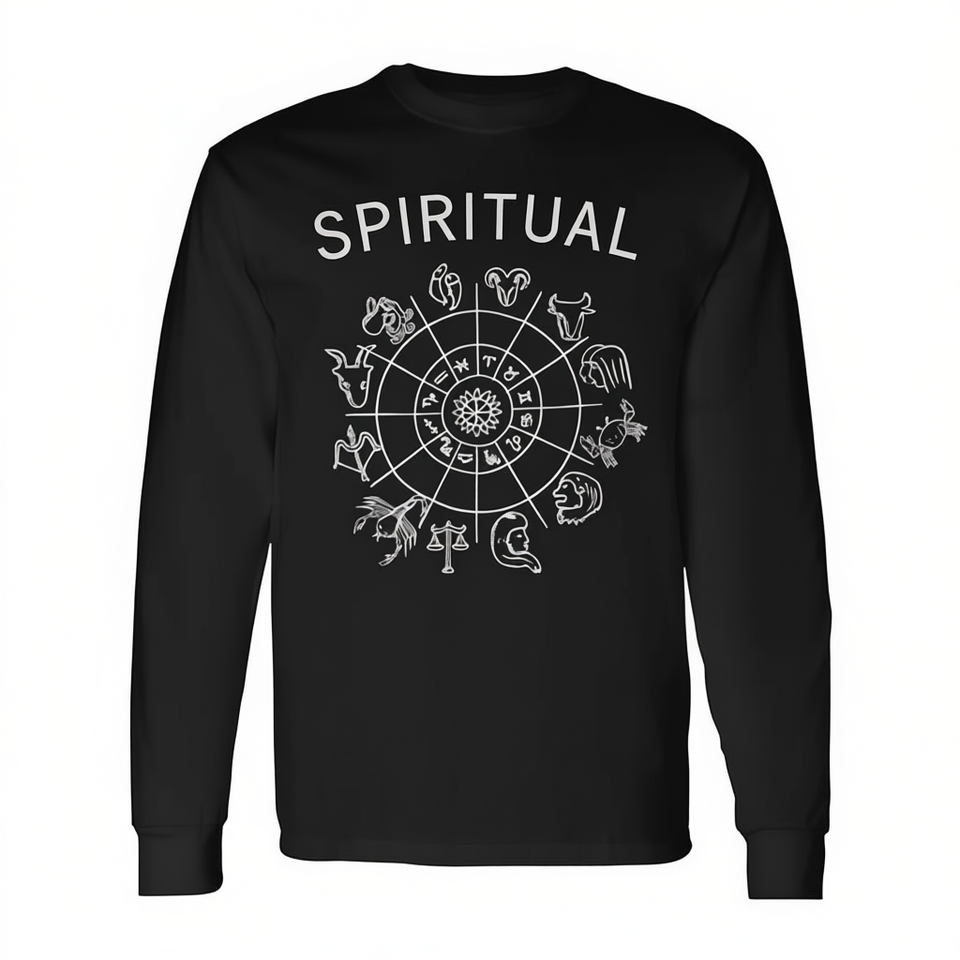 T-shirt a maniche lunghe con design zodiacale: Ariete Sole, Gemelli Luna, Leone Risplendente