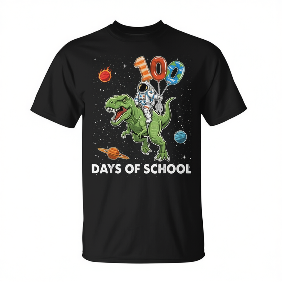 Maglietta per ragazzi Astronaut T-Rex 100th Day of School, maglietta promozionale per 100 giorni di scuola
