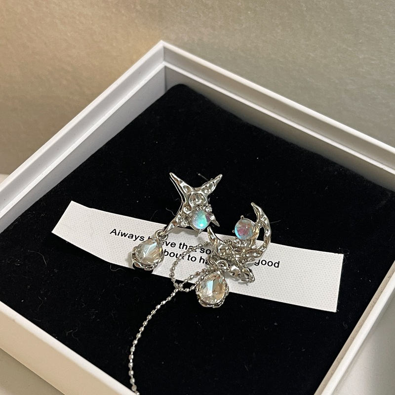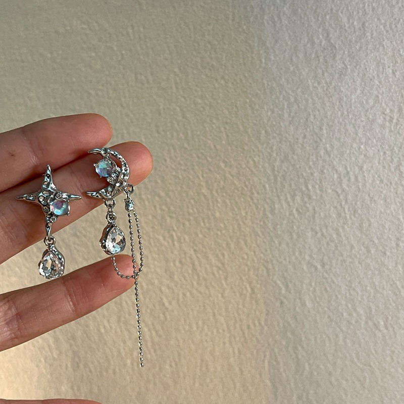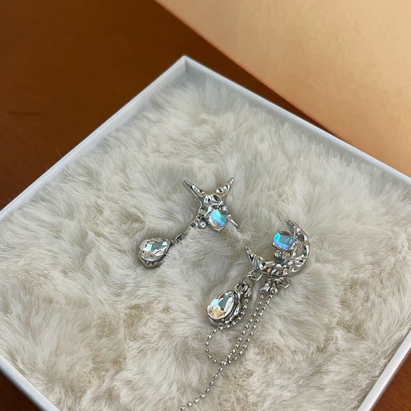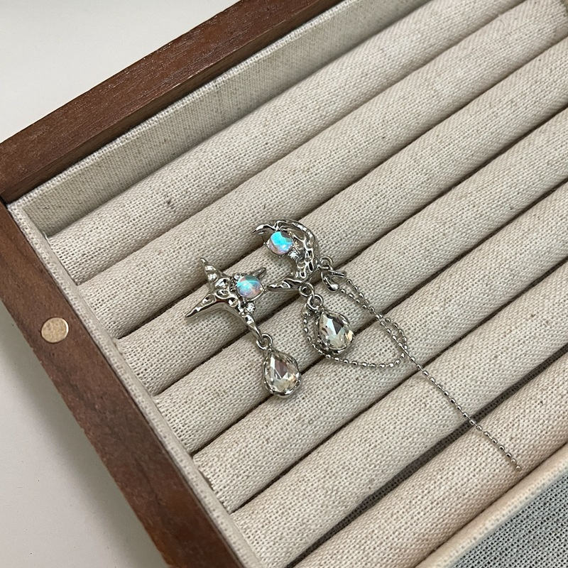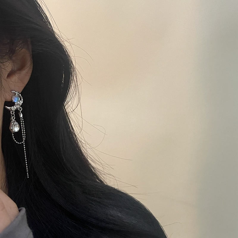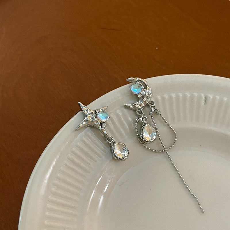 Orecchini pendenti in pietra asimmetrici al chiaro di luna con nappine per ragazze gioielli di moda personalizzati orecchini luna e stella