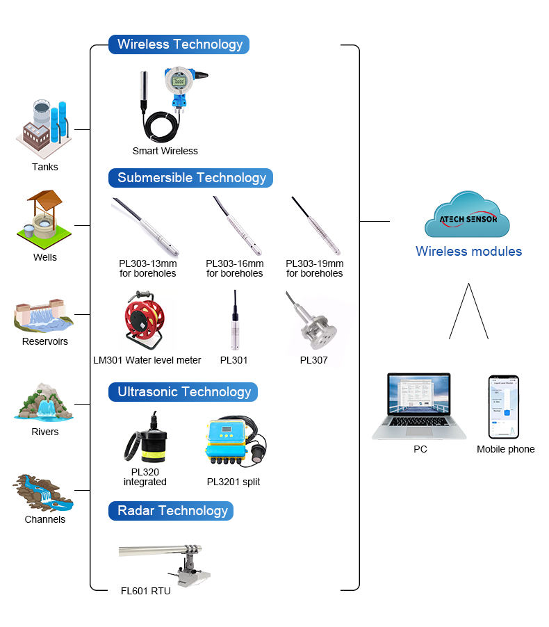 Sensore di Livello di Riempimento Atech Lorawan GPRS Wifi per Serbatoio d'Acqua Sensore di Livello Acqua Digitale Wireless PL301 Zigbee per Serbatoio d'Acqua