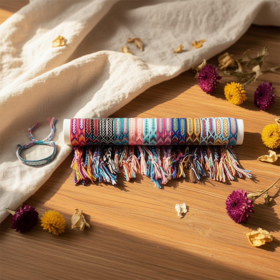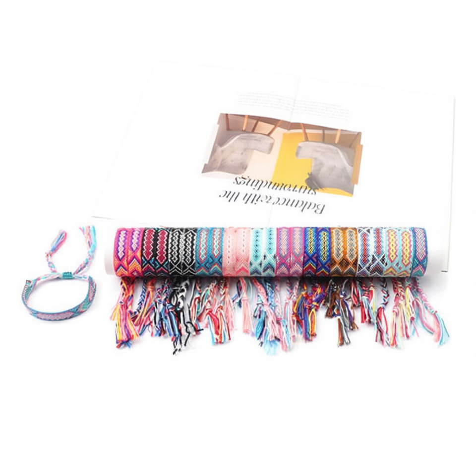 Set di 24 Braccialetti Intrecciati Atelier, 1,5 Cm, Multicolore con Nappine, Stile Bohémien, Elastici, Unisex, alla Moda