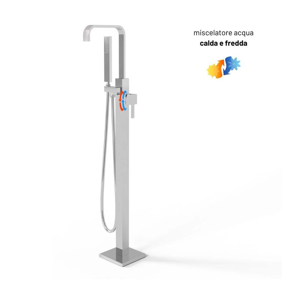 Atene lucido cromato ottone Freestanding da pavimento miscelatore da bagno pacchetto di 1 bagno e doccia rubinetto