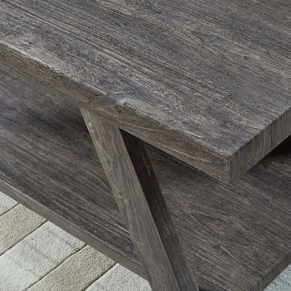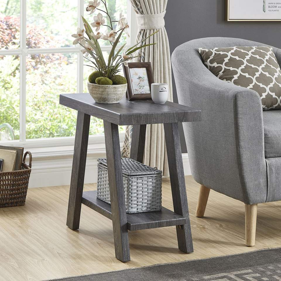 Tavolo Console Contemporaneo in Legno Finitura Grigio Atene, Elegante Tavolino Laterale con Ripiano