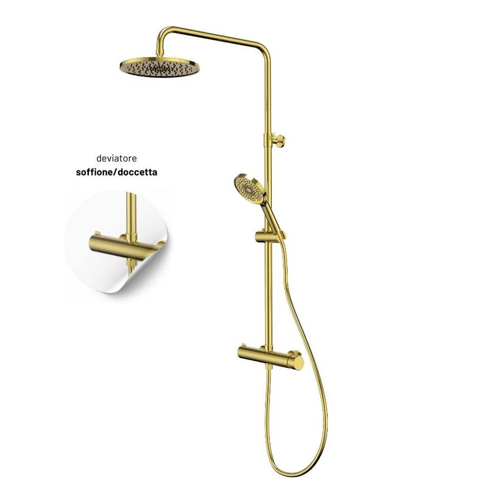Atene oro lucido finitura bagno Set struttura in ottone telescopico colonna doccia con termostato dotato di accessori