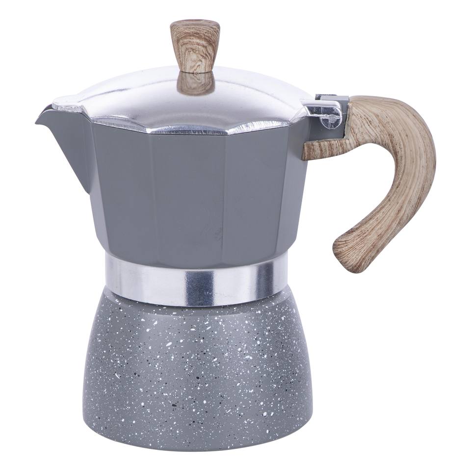 Caffettiera Moka Atlantic da 3 tazze con manico in legno e base macchiettata per la preparazione sul fornello