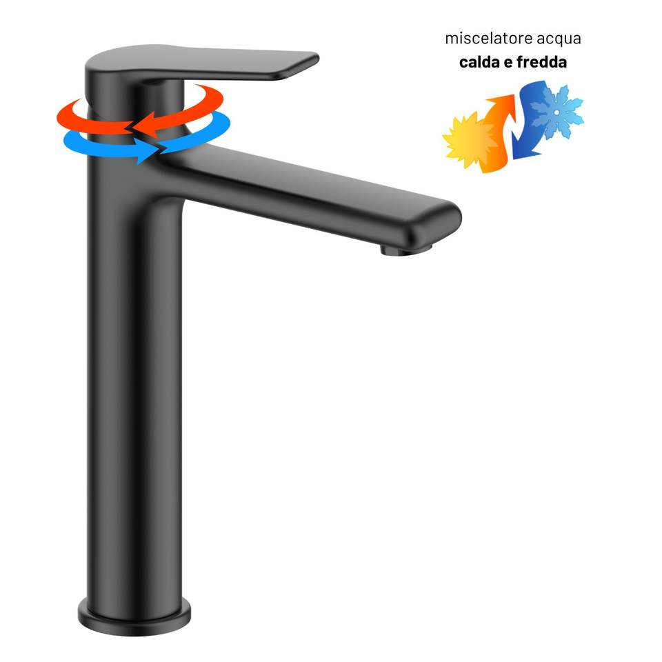 Atlantic Series High Spout Matt Black Brass Basin Mixer Tap Click Clack Waste Pack of 1