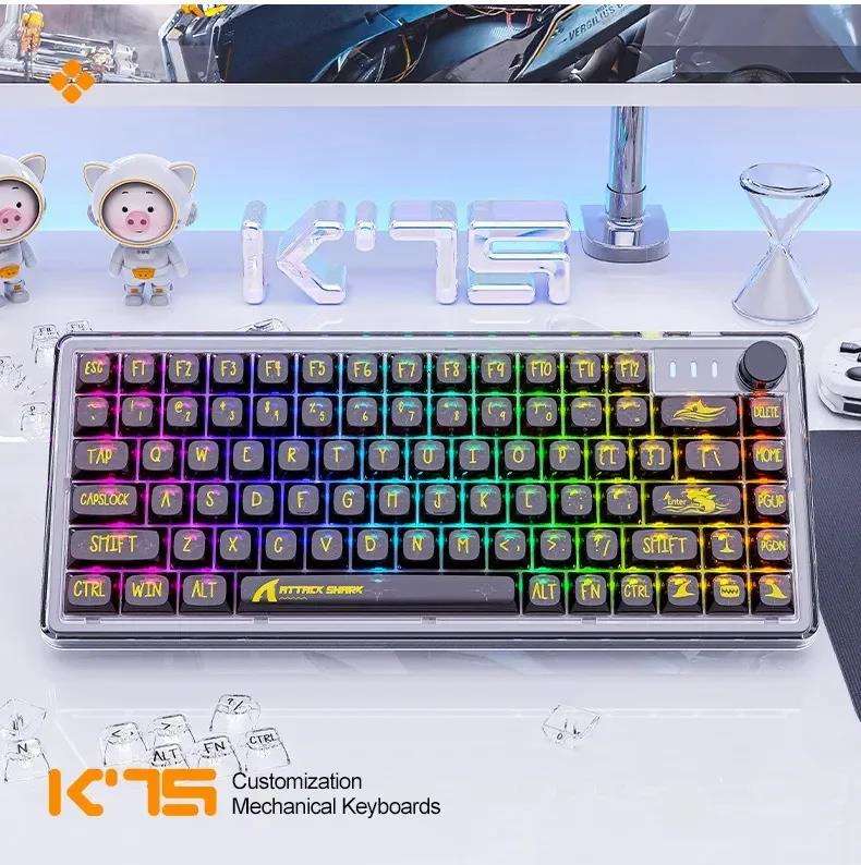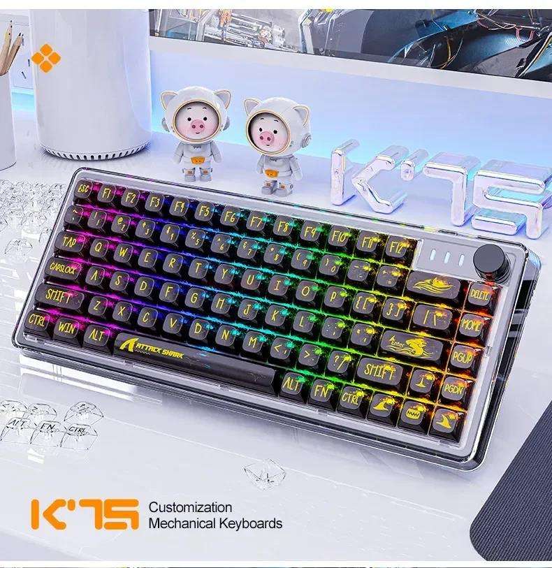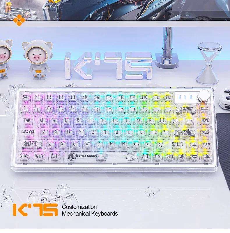 Tastiera Meccanica Trasparente Attack Shark K75, 82 Tasti, USB Cablata, RGB, Hot-Swap, Tastiera da Gaming con Tasti Multimediali, Anti-Ghosting