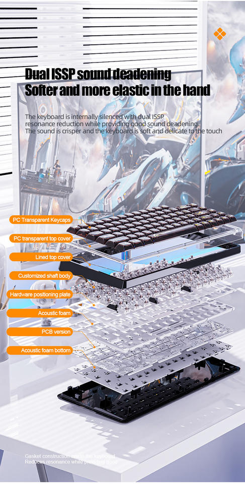 Tastiera Meccanica Trasparente Attack Shark K75 Personalizzata Cablata RGB Hotplug per Esports e Gaming