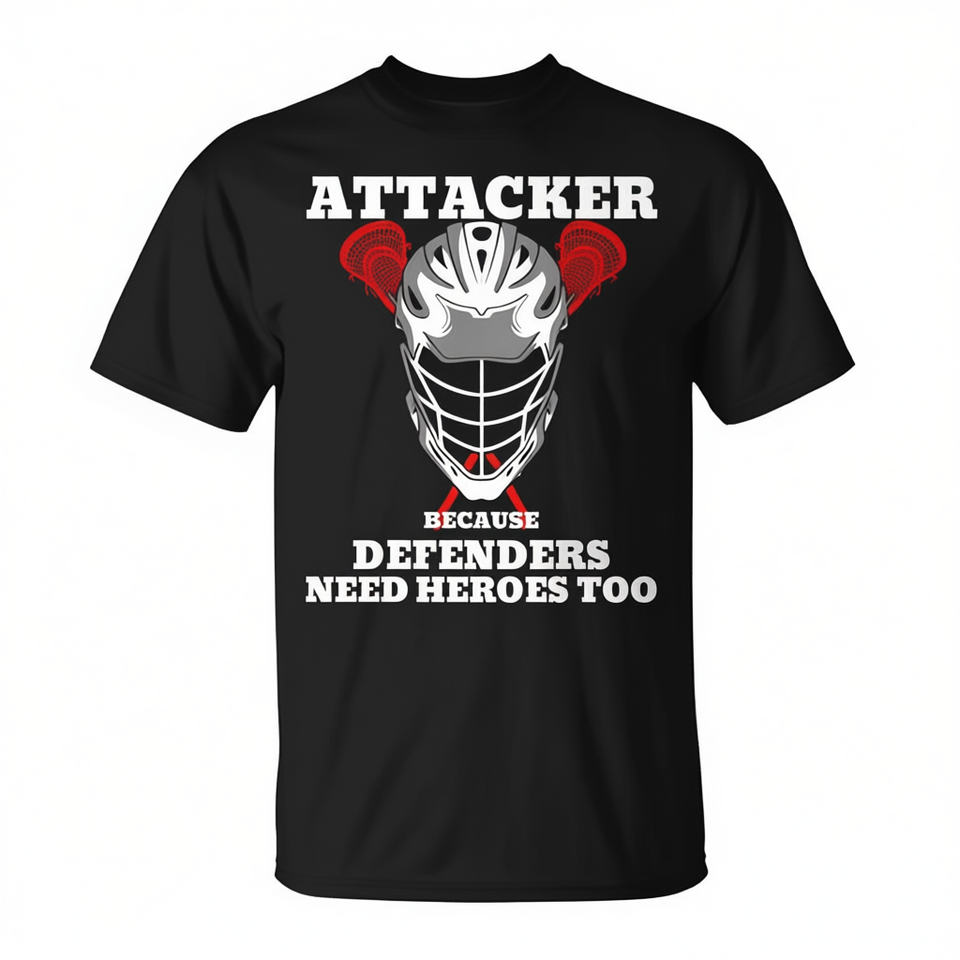 Attacker Because Defenders Need Heroes Too T-shirt da uomo nera per lacrosse